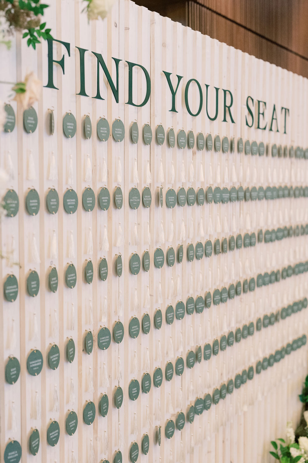 Each guest experienced the seating chart installation, walking up the steps to find their escort card amongst the trees. Each escort card was die cut in the shape of a fig, with the guest name and table number in calligraphy. Menus were adorned with calligraphy as well. The bar menus and the table numbers pulled in fun materials for texture and depth. 💜